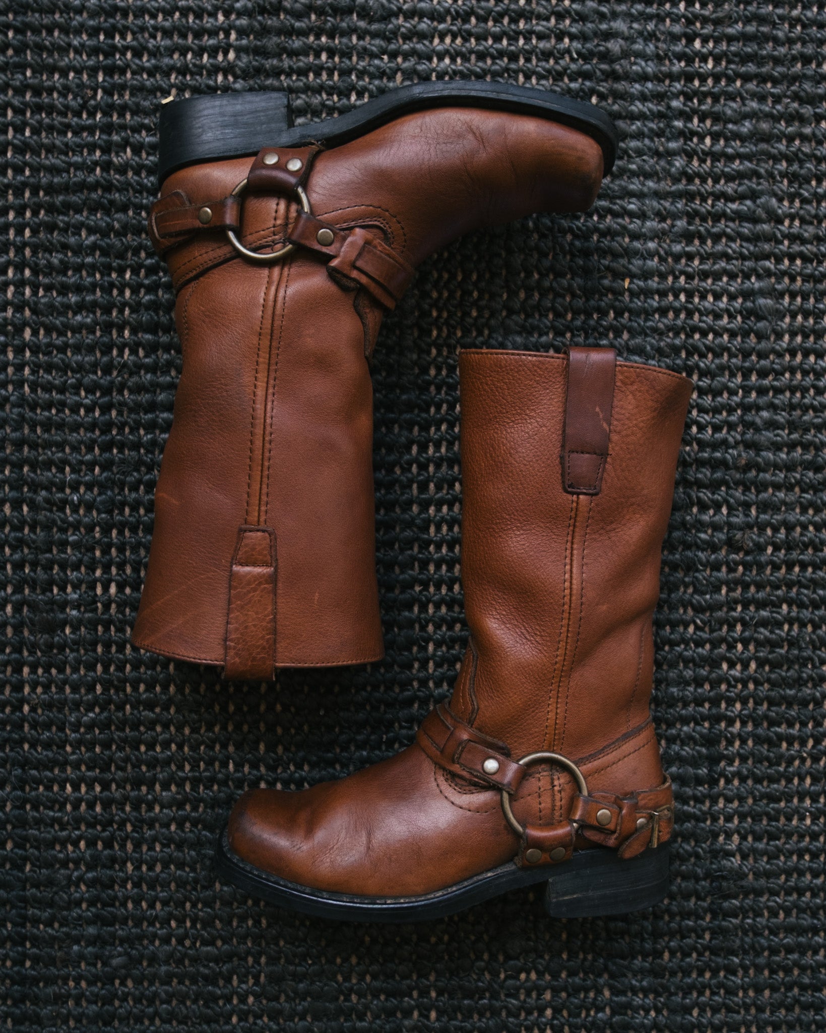 Vintage tan harness style boots.